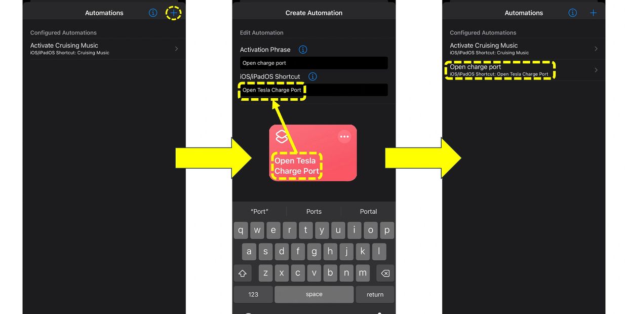 Once configured, an automation is triggered by saying “Hey K.A.I.T.T.” followed by its designated activation phrase. For instance, the example above is triggered with: “Hey K.A.I.T.T., open charge port.”